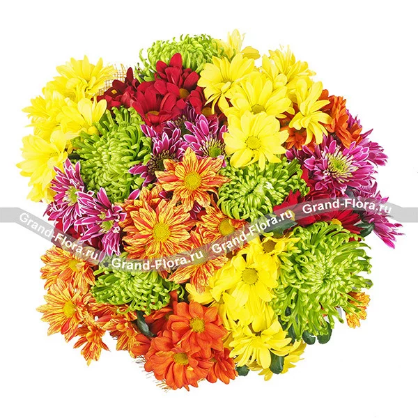 В букете «Осенний блюз» собраны самые разные сорта хризантем, но и это не главное, что привлекает в нем. Только взгляните на это сумасшествие ярких красок, они вызывают только позитив и поднимут настроение в серый пасмурный день. Именно поэтому наша международная служба доставки цветов предлагает вам этот букет хризантем с доставкой, чтобы ваши близкие всегда улыбались!