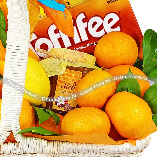 Цитрусовый эликсир - корзина подарочная с фруктами и конфетами