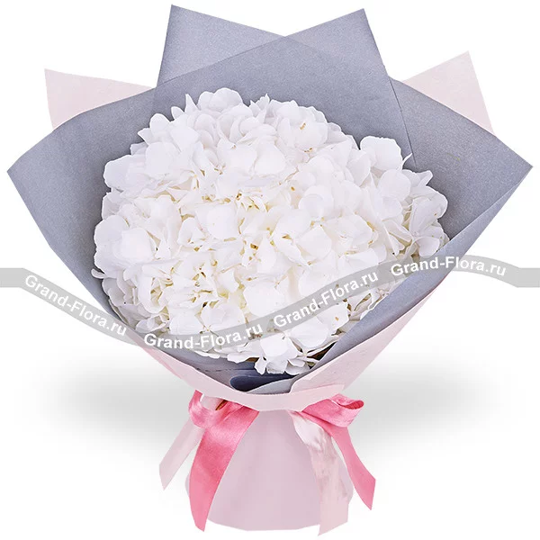 Уменьшенный: гортензия белая - 1 шт., упаковка, лента.